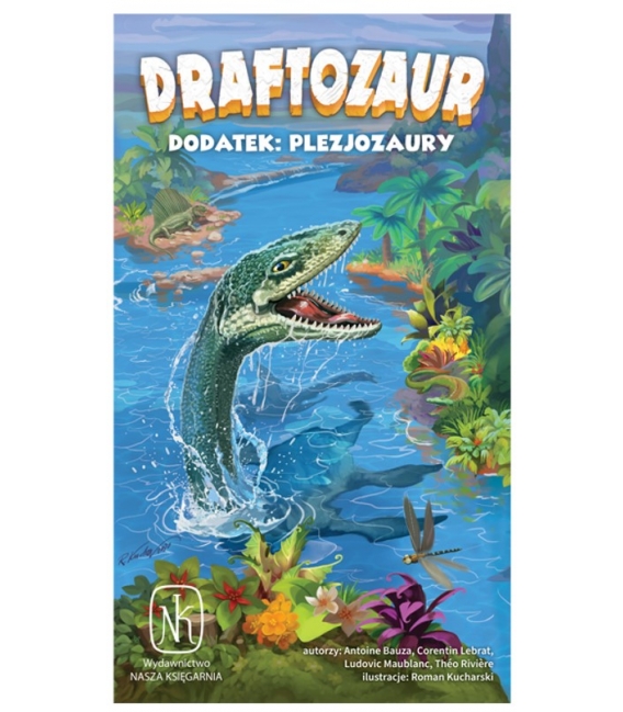 Zawartość pudełka: 10 drewnianych pionków plezjozaurów, 5 dwustronnych plansz.