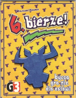 6. bierze! : bycza gra nie dla osłów! / autor Wolfgang Kramer ; grafika Franz Vohwinkel. - Wydanie 10. - Konin : G3, 2019. - 1 gra (104 karty) : karton, tektura, kolor ; w pudełku 13x10x2 cm + instrukcja (1 dwustronnie zadrukowana karta złożona w harmonijkę : ilustracje kolorowe ; 43x15 cm).