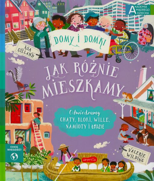 Chcecie odwiedzić dzieciaki z różnych stron? Zobaczyć, gdzie mieszkają na co dzień; jak wyglądają ich łóżka, pokoje i podwórka? Jakie mają rodziny, zwierzęta i zabawki? Gdzie się uczą i jak spędzają czas? W książce Jak różnie mieszkamy zaglądamy do najróżniejszych domów, mieszkań, apartamentów, chat, baraków, gospodarstw, jurt i łodzi. Dwadzieścioro dzieci z różnych kontynentów oprowadza nas po swoich domach. Jedne mają wiele pokoi, a nawet pięter, inne to skromne chatki. stojące wysoko w górach lub pod ziemią, w buszu i przy brzegu. Każdy z domów jest wyjątkowy tak jak jego mieszkańcy. Dzięki temu, że się różnimy, świat jest taki ciekawy! Akademia mądrego dziecka. Chcę wiedzieć to seria książek popularyzujących naukę przeznaczona dla starszych przedszkolaków oraz uczniów szkół podstawowych. Dzięki bogatym, kolorowym ilustracjom i ciekawej formie książki wpisują się w zdobywający popularność nurt edukacji edutainment (od angielskiego education - nauka oraz entertainment - rozrywka), którego podstawowym celem jest edukacja poprzez rozrywkę. Poruszana tematyka oraz przystępna forma przekazywania treści sprawiają, że są to doskonałe książki na nagrody szkolne (w konkursach lub na zakończenie roku). [nota wydawcy]
