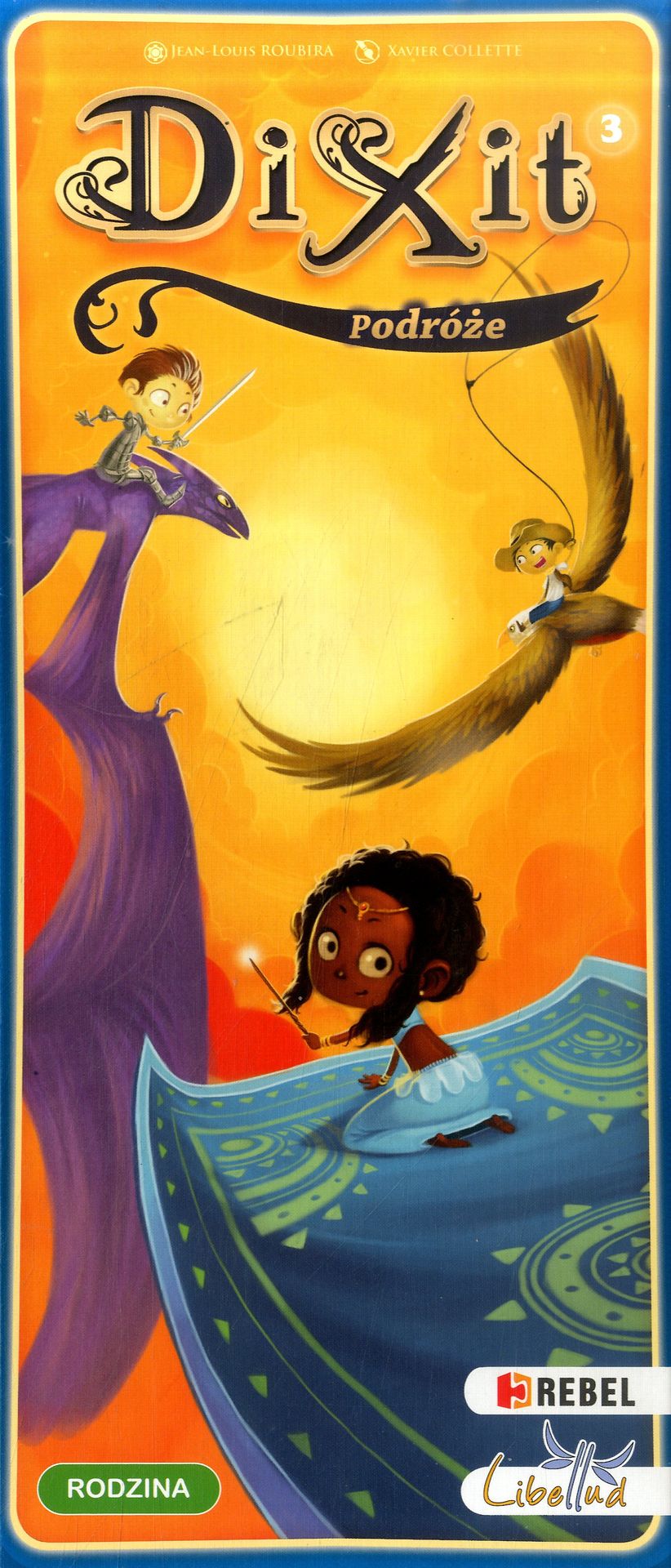 Dixit : Podróże. 3 / autor Jean-Louis Roubir ; ilustrator Xavier Collette. - France : Libellud ; Gdańsk : Rebel, dystr., 2021. - 1 gra (84 karty) : karton, kolor ; w pudełku 5x28x12 cm + instrukcja ([6] stron : ilustracje kolorowe ; 12 cm).