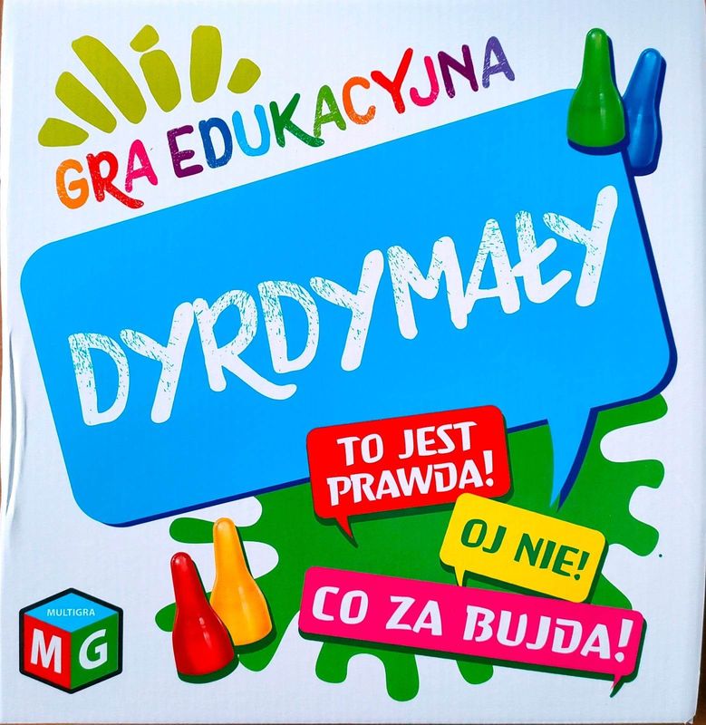 Dyrdymały : gra edukacyjna. To jest prawda! Oj nie! Co za bujda! - Chwaszczyno : MULTIGRA, 2023. - 1 gra (dwustronna plansza,8 pionków, 220 kart pytań, 16 kart "Prawda" i "Fałsz" : karton, plastik, kolor ; w pudełku 25x25x6 cm + instrukcja (4 strony, kolor, 21 cm).