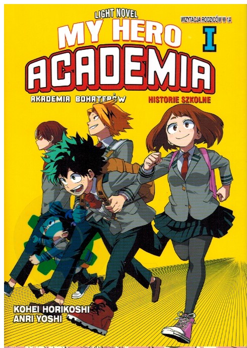 Wizytacja rodziców w 1 A : light novel / Kohei Horikoshi, Anri Takahashi ; [tłumaczenie Karolina Dwornik]. - Wydanie 1. - Warszawa : Wydawnictwo Waneko, grudzień 2021. - 214, [2] strony, [1] karta tablic złożona : ilustracje ; 18 cm.